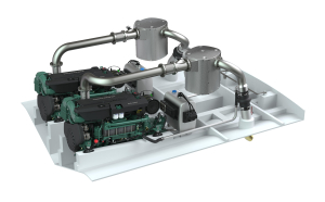 This configuration of the Volvo Penta D16 MH IMO III propulsion engine boasts a complete electrical system as well as control system.